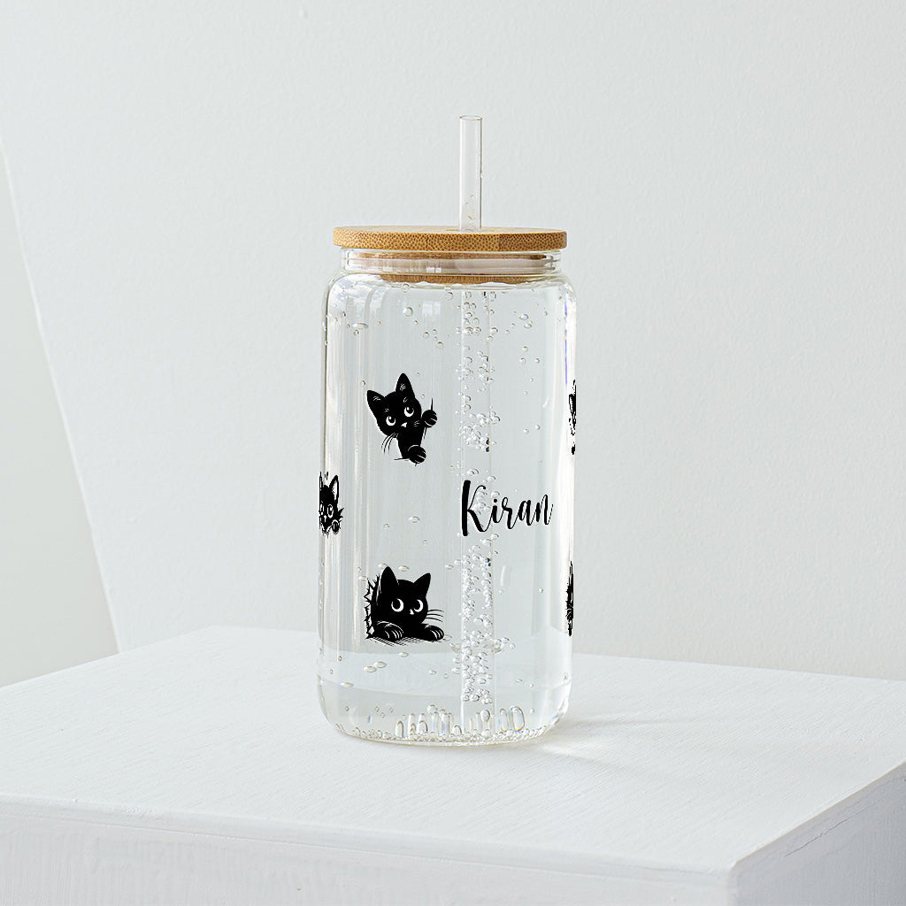 Cute Black Cats Glass Tumbler with Personalisation- Clear 540 ml