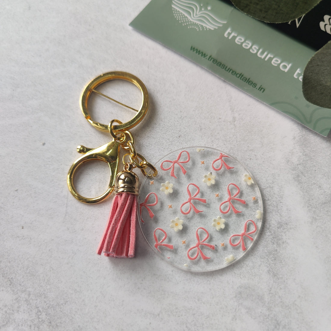 Pink Bow and Daisy Flowers Acrylic Keychain