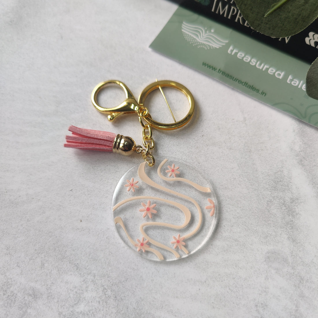 Pink Bow and Daisy Flowers Acrylic Keychain