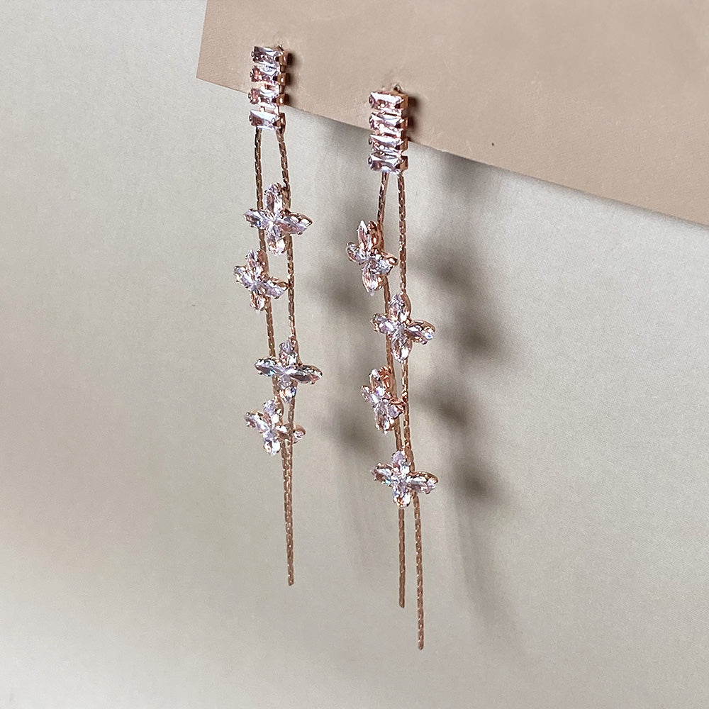 Crystal Bloom Cascade Earrings - Rosegold