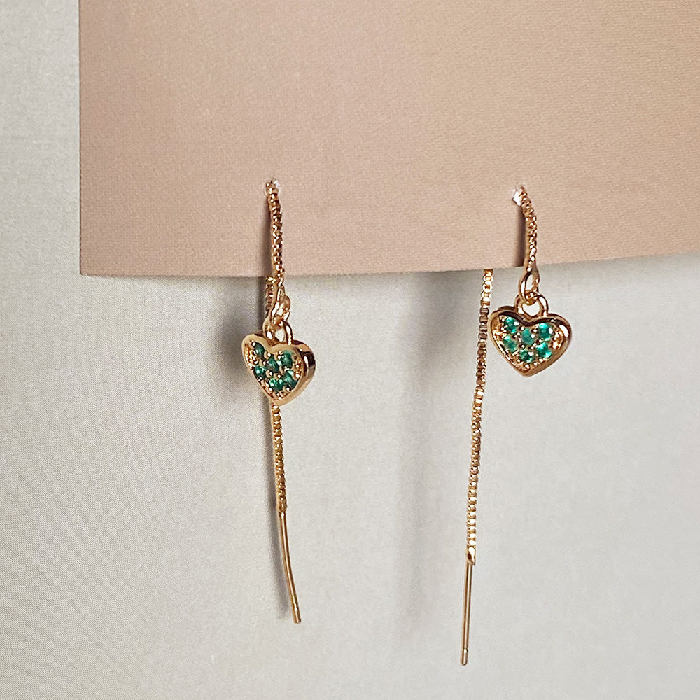 Emerald Heart Threader Earrings