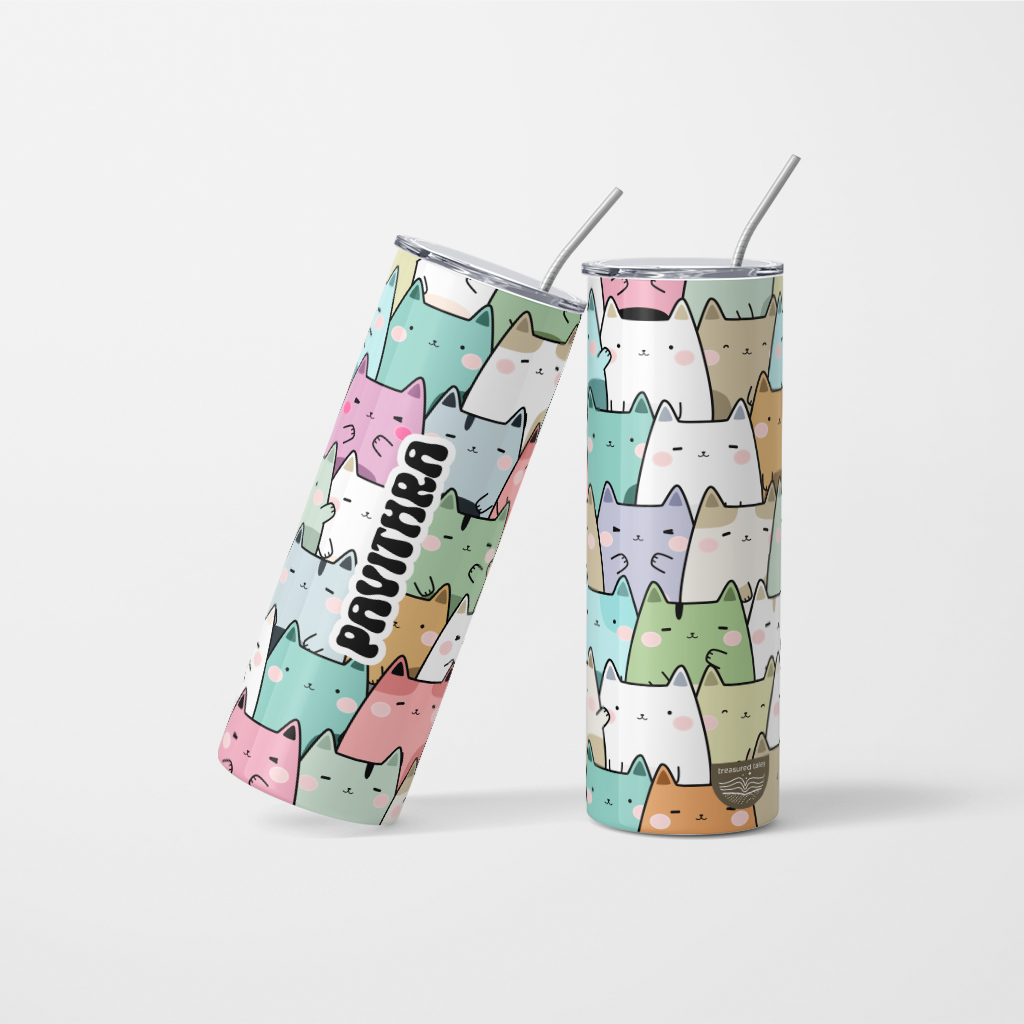 Cute Black Cats Glass Tumbler with Personalisation- Clear 540 ml