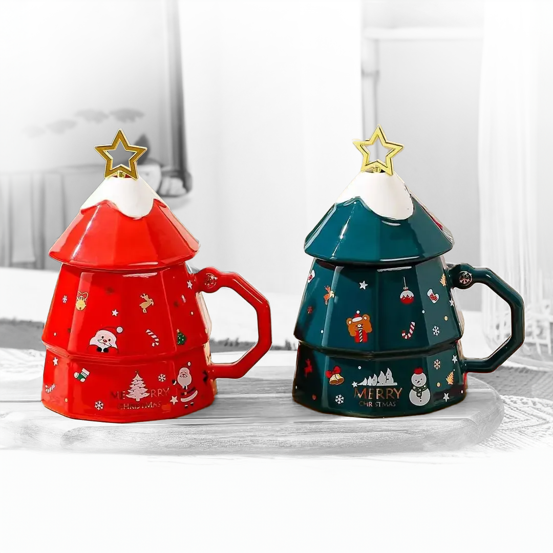 Christmas Tree-Shaped Ceramic Mug with Star Stirrer – 400ml Make your holiday moments extra special...