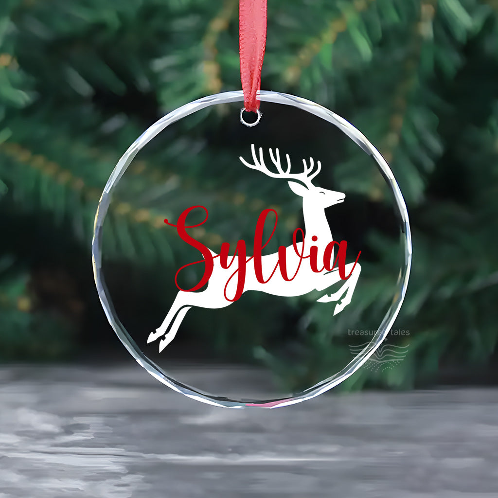 Crystal Glass Christmas Tree Ornament with Personalised Name