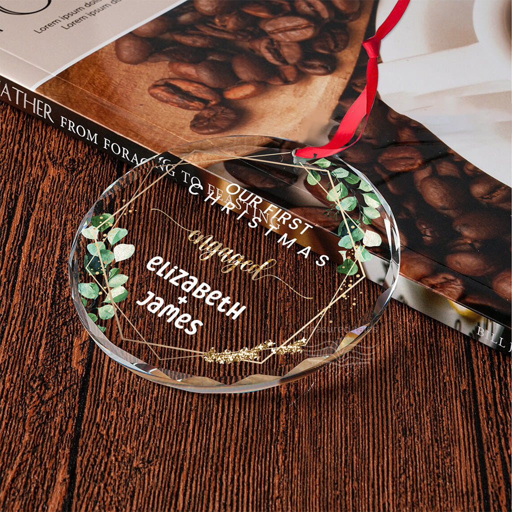 Engaged Couple Crystal Glass Christmas Tree Ornament with Names