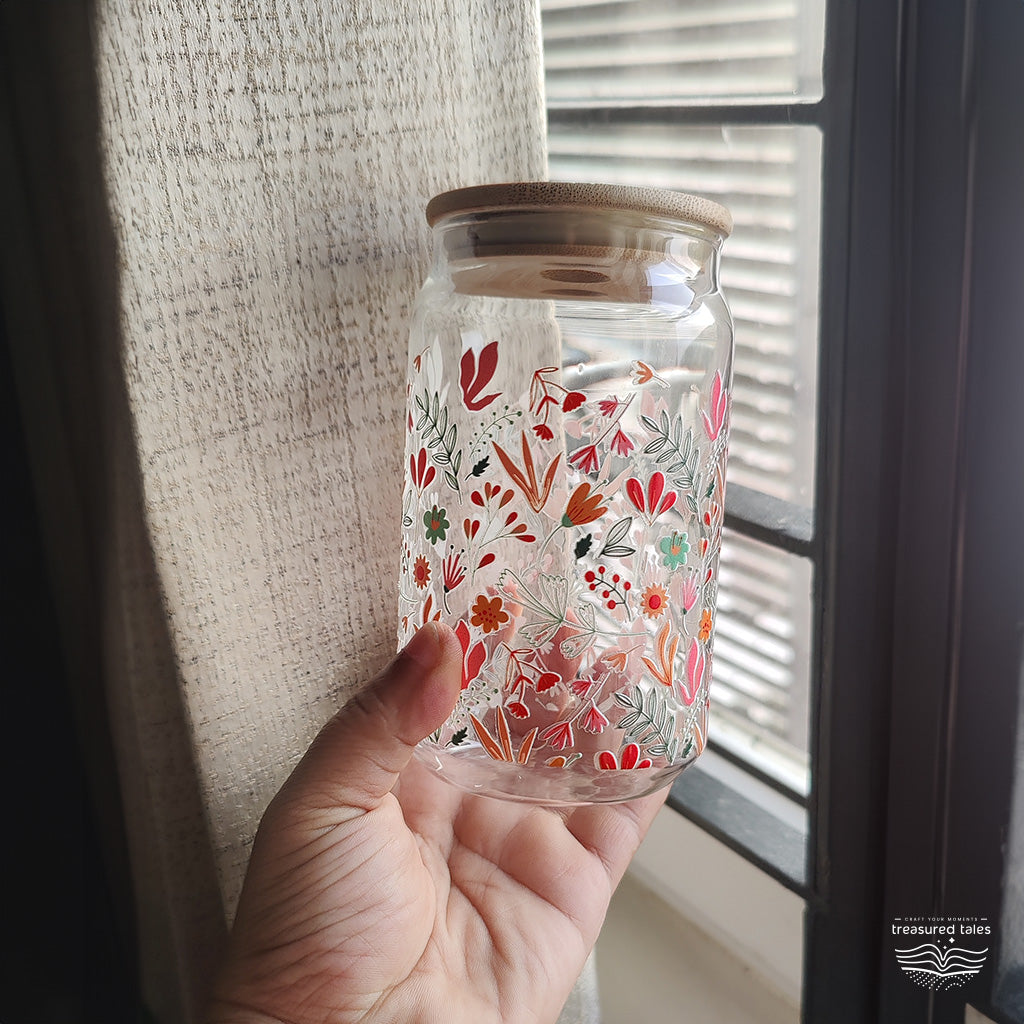 Wild Flowers Glass Tumbler - Clear 540 ml