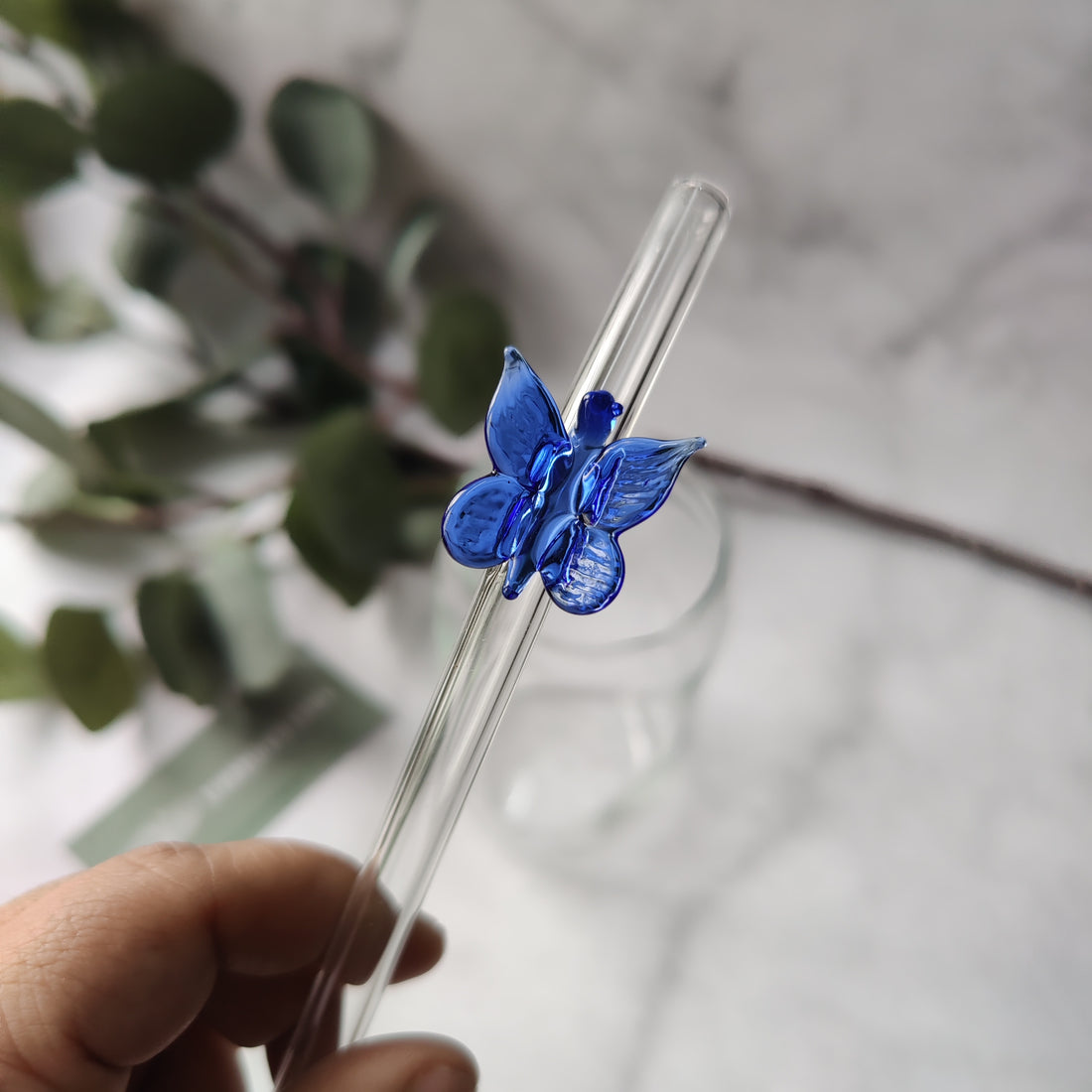 Reusable Clear Glass Straw with Blue Butterfly, Vibrant and Adorable Butterfly Straw – Ideal for Smoothies, Milkshakes, Juices, Teas, Parties, and Gift-Giving