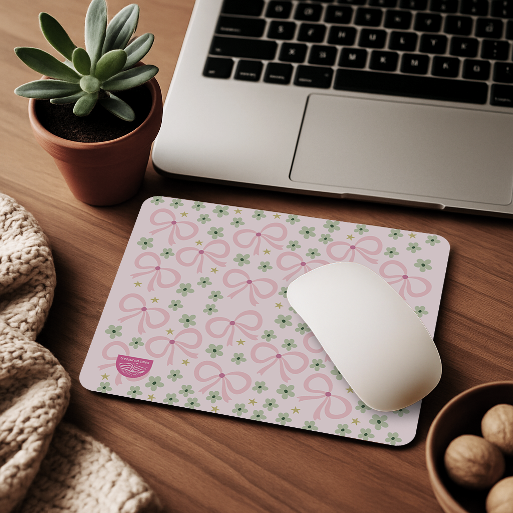 Green Daisy With Pink Bow Mouse Pad Non-Slip Gaming Mouse Mat