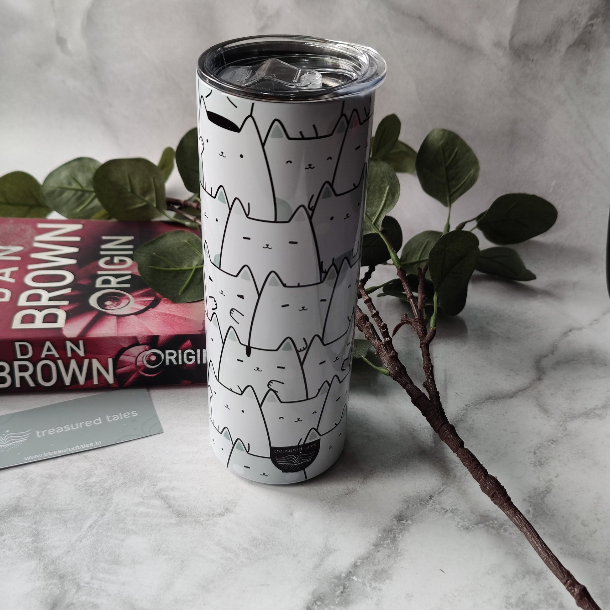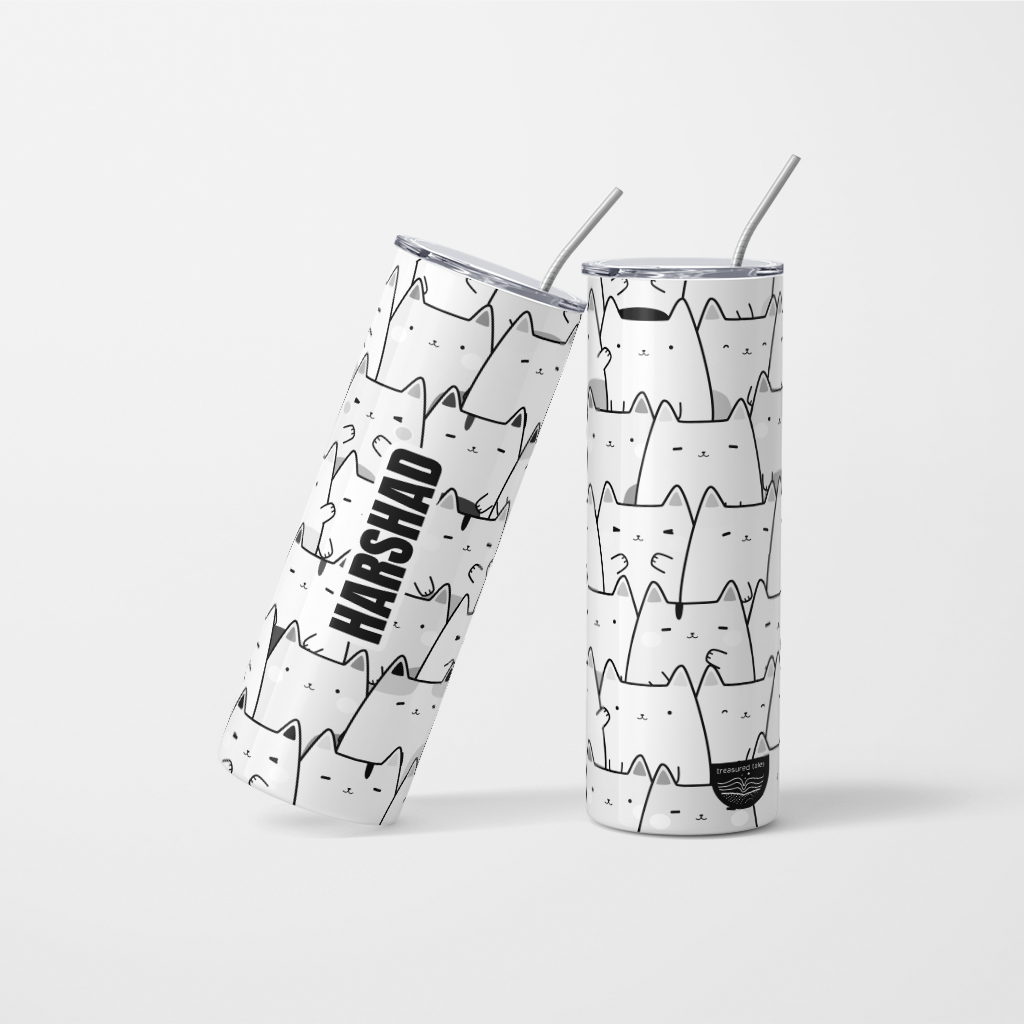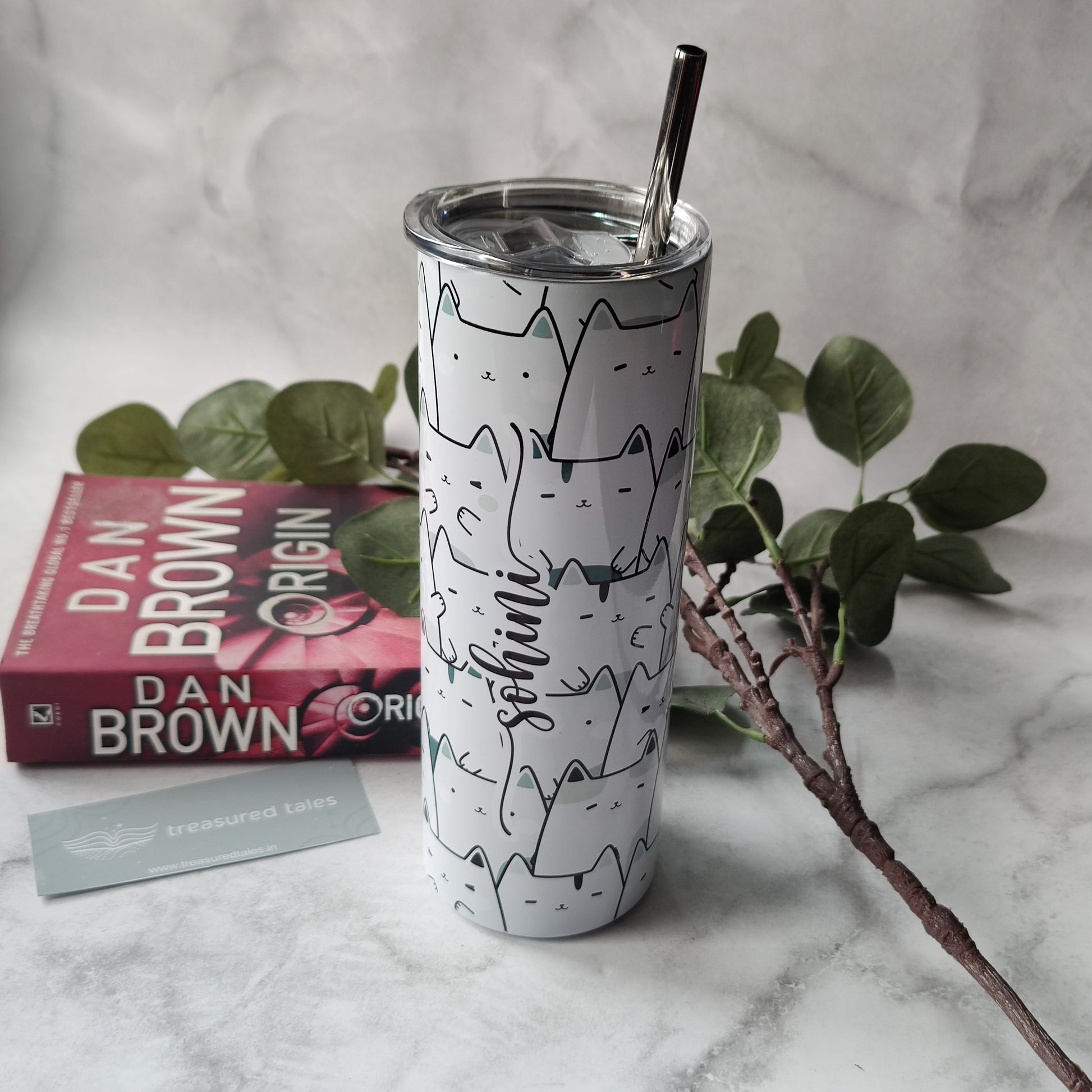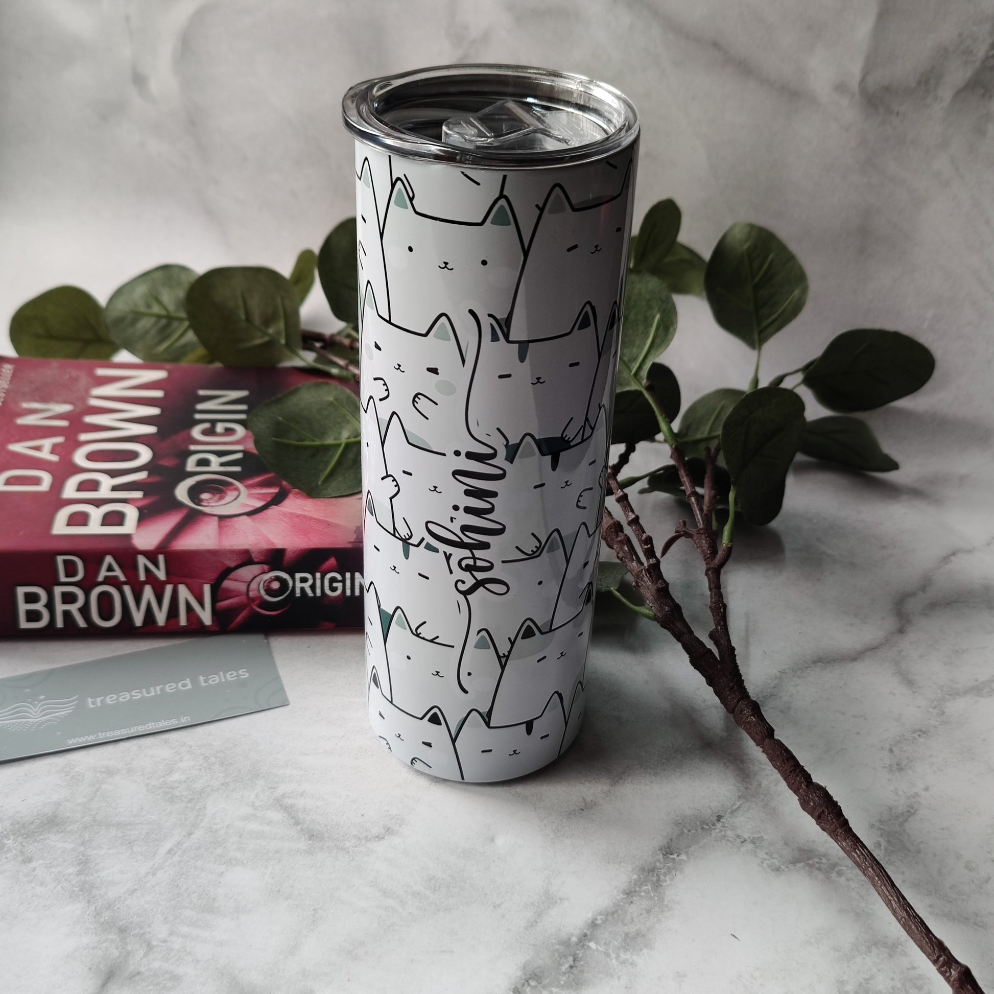 Black and White Cat Tumbler with option for Personalisation - 600ml