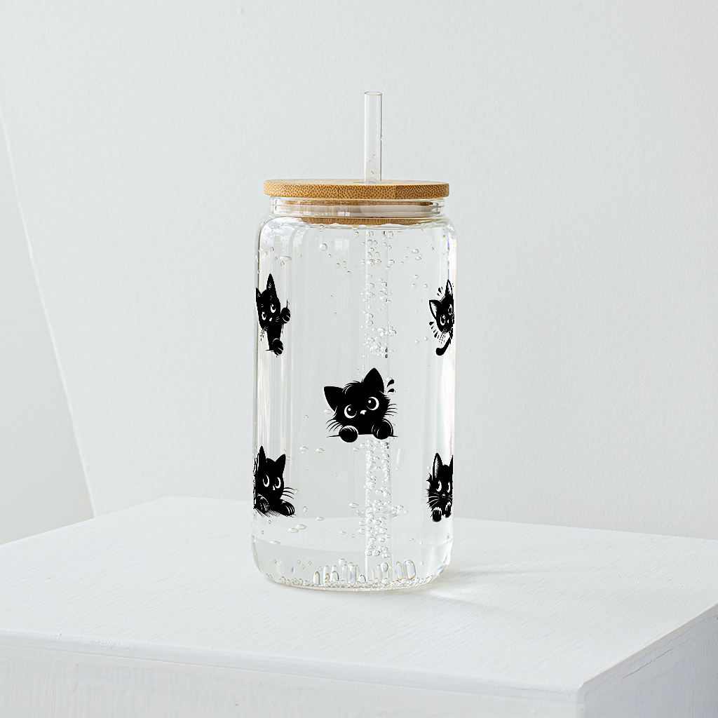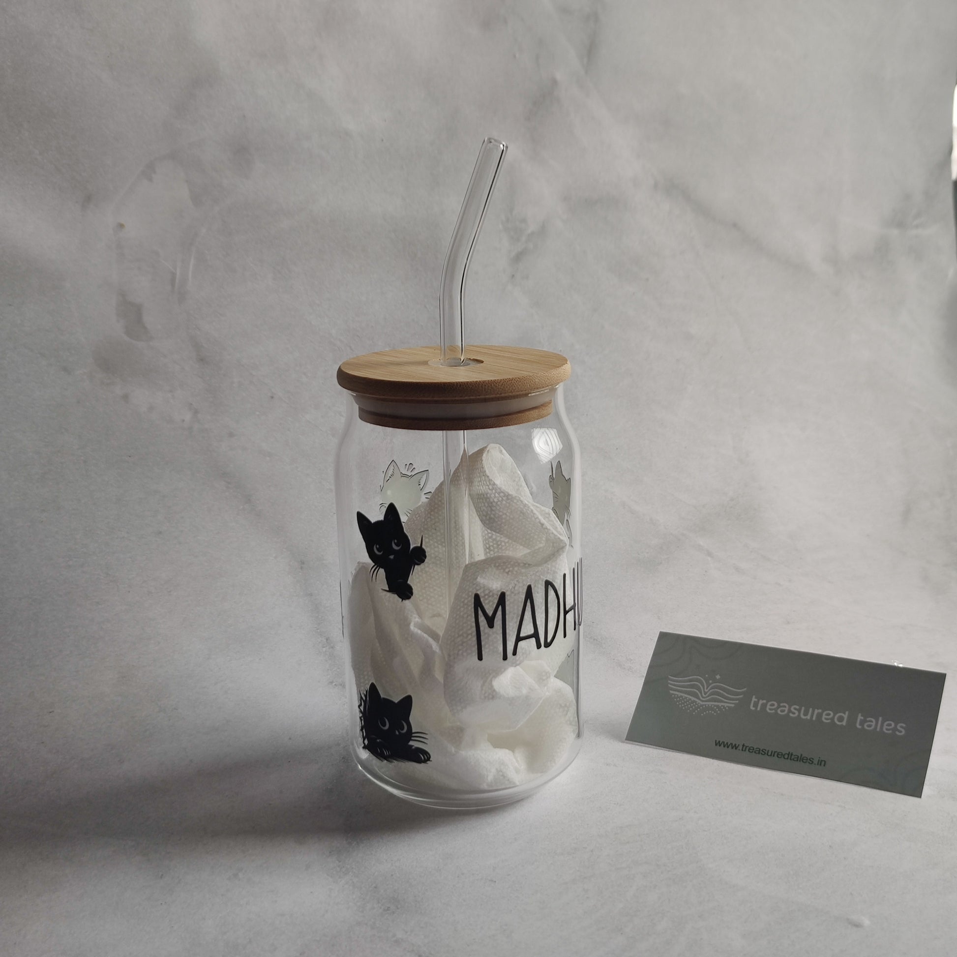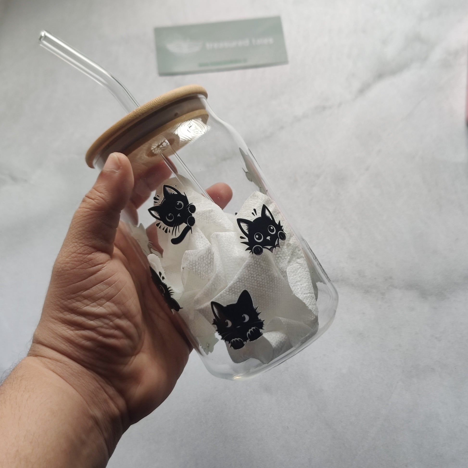 Cute Black Cats Glass Tumbler with Personalisation- Clear 540 ml