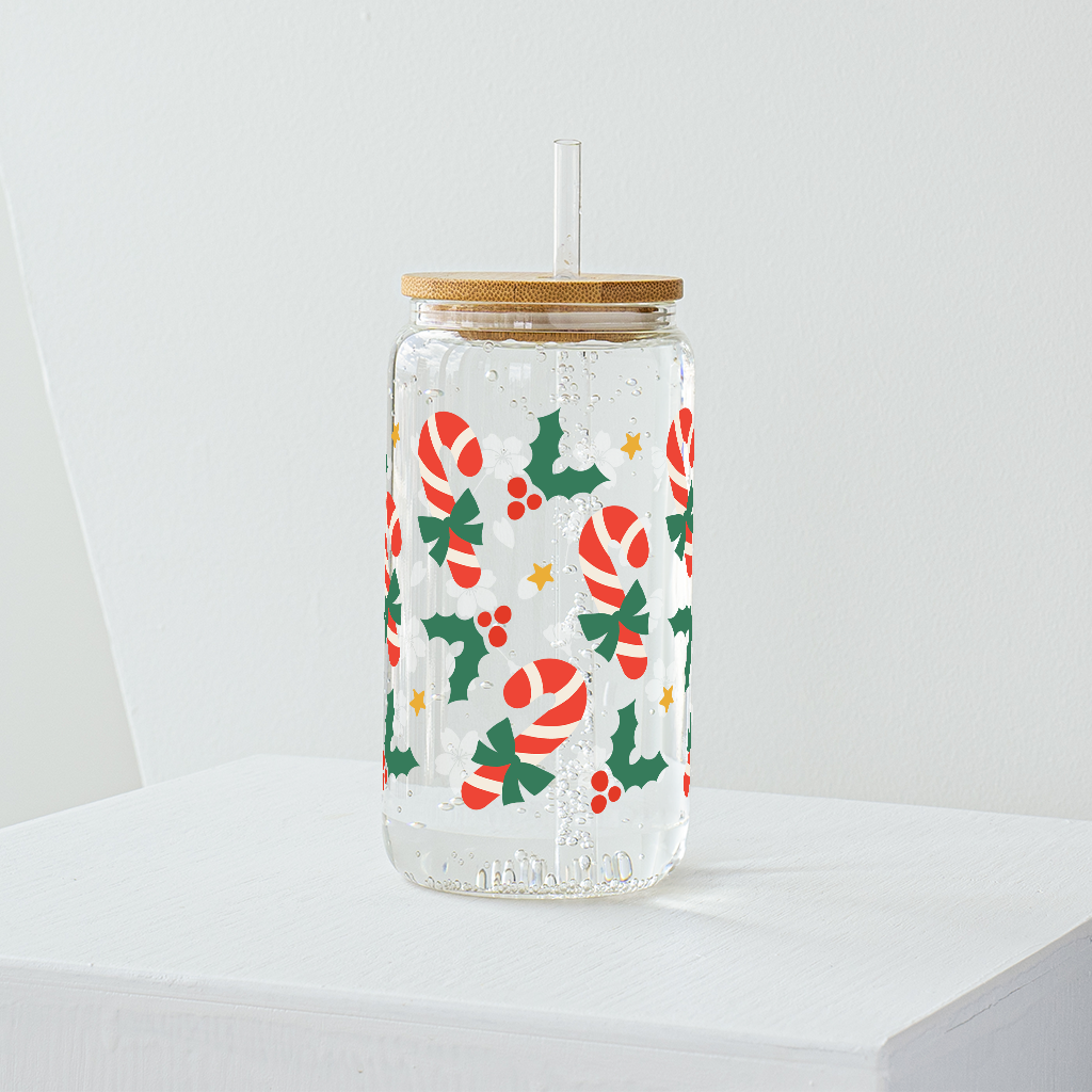 Elevate your glassware selection with our fashionable and functional Can Shaped Printed Glass Drinkware.