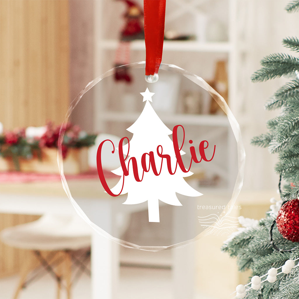 Crystal Glass Christmas Tree Ornament with Personalised Name