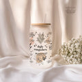 Each glass tumbler features a charming can-shaped design with intricate exterior prints, available in frosted finish.