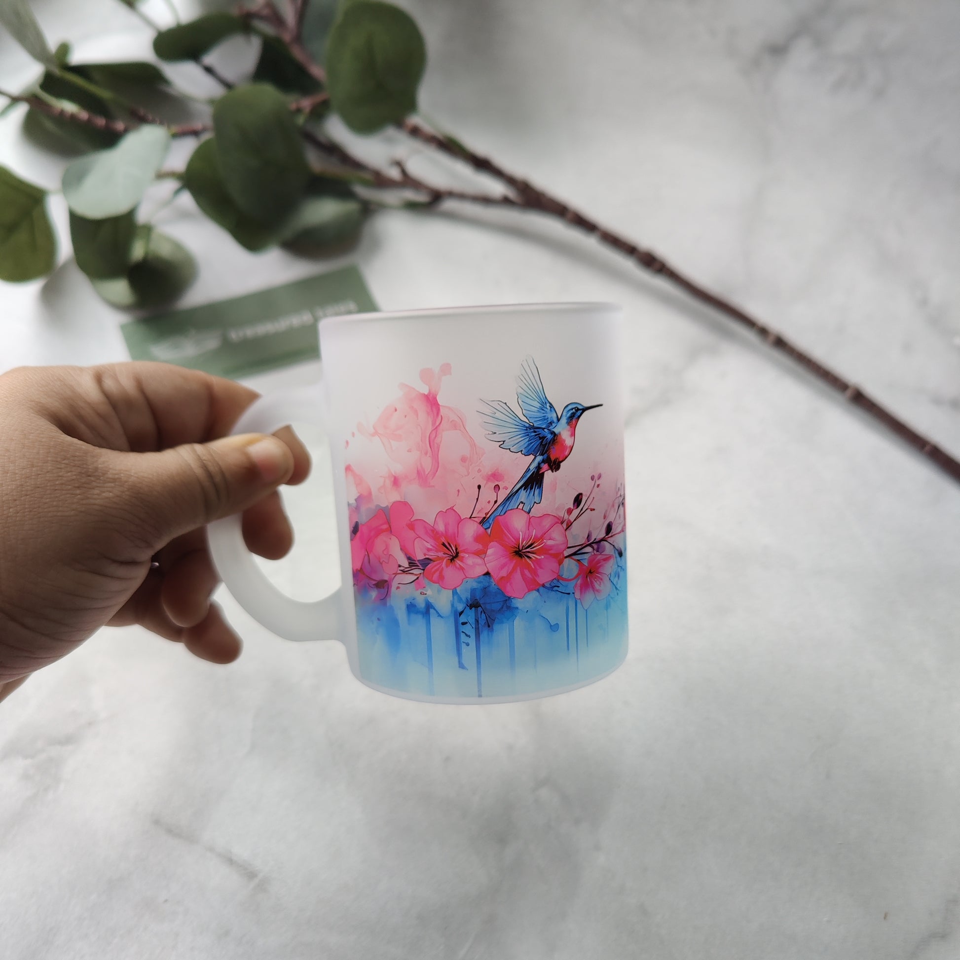 Hummingbird Frosted Glass Mug