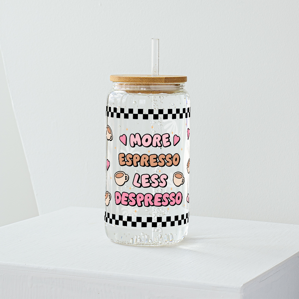 More Expresso Less Depresso Coffee Glass Tumbler - Clear 540ml