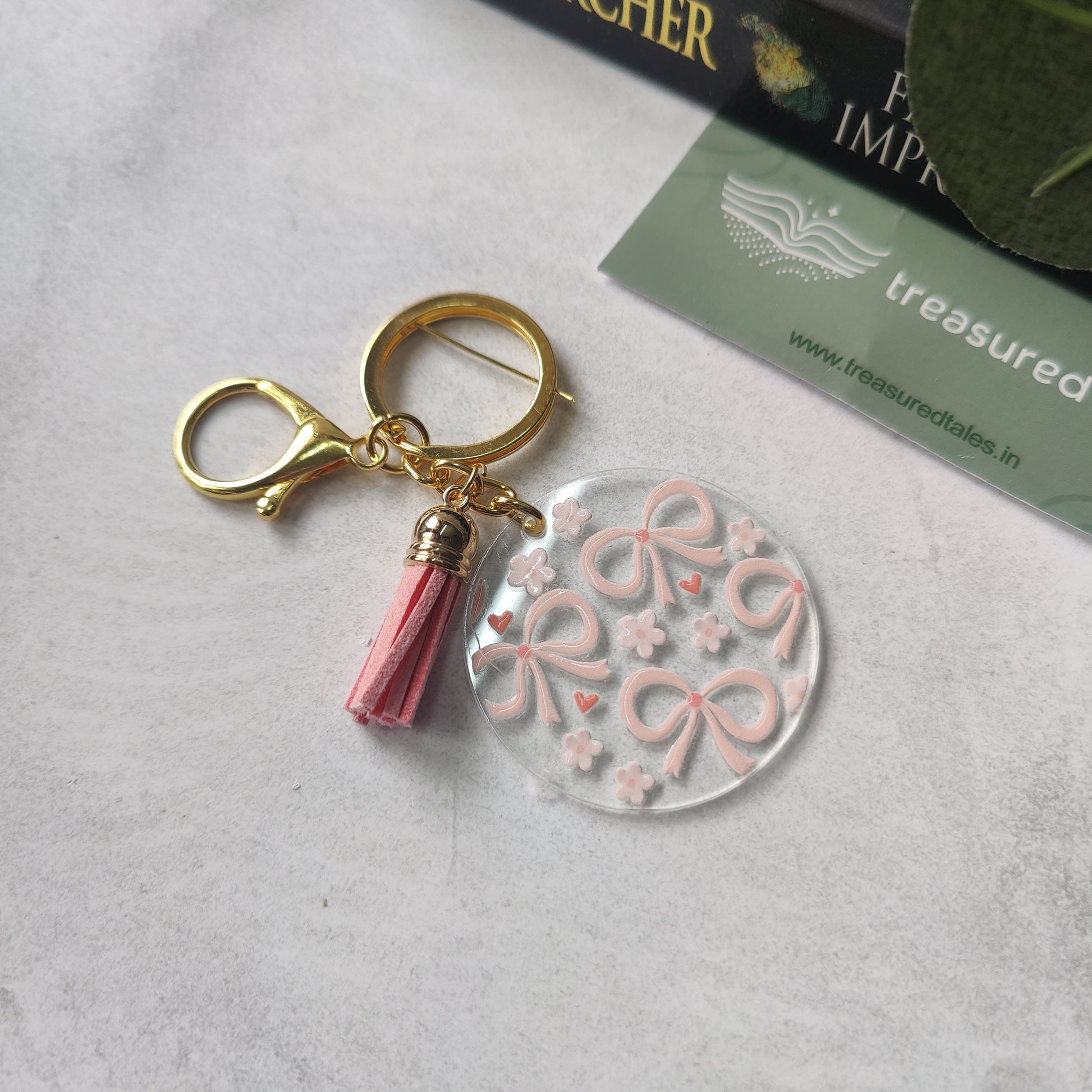 Pink Bow and Daisy Flowers Acrylic Keychain