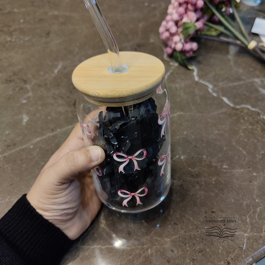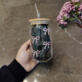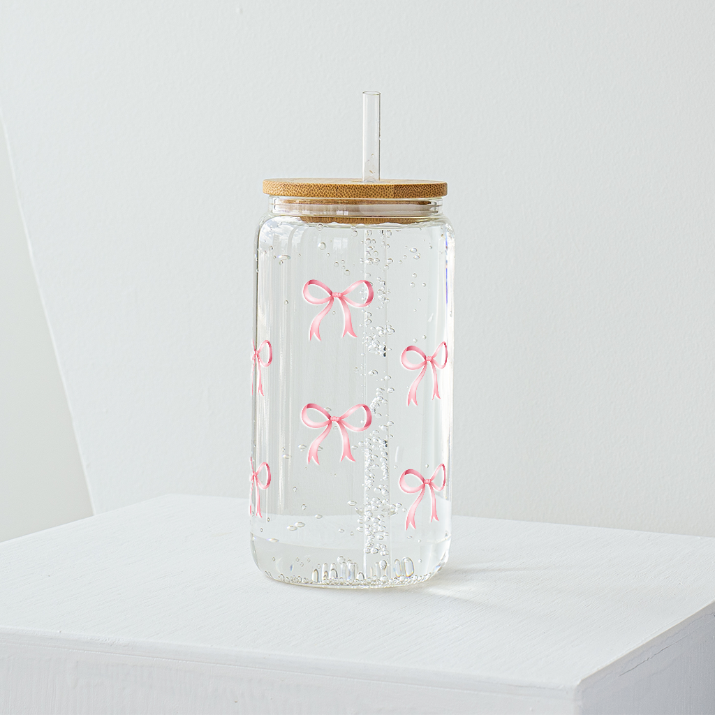 Pink Bow Glass Tumbler with personalisation- Clear 540 ml