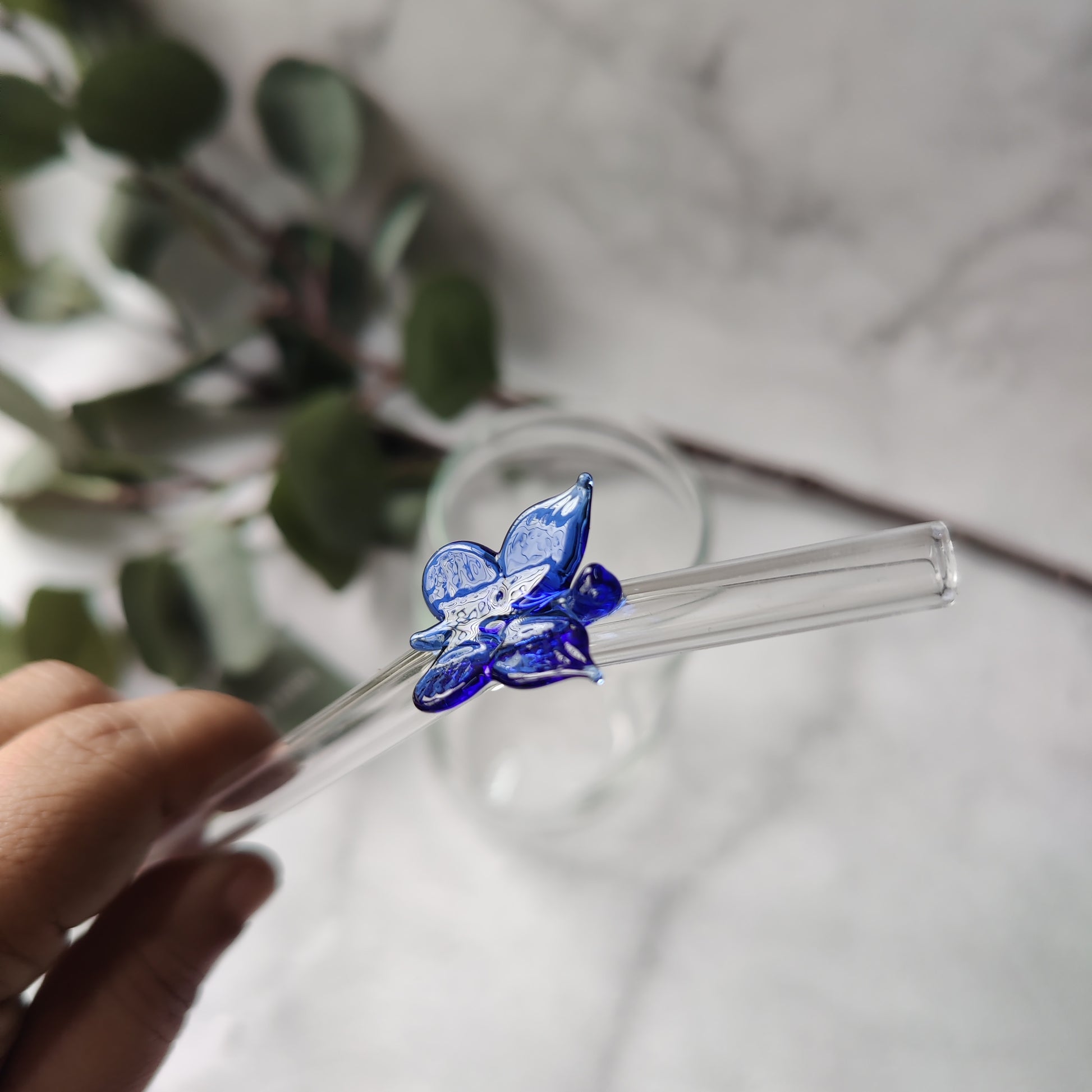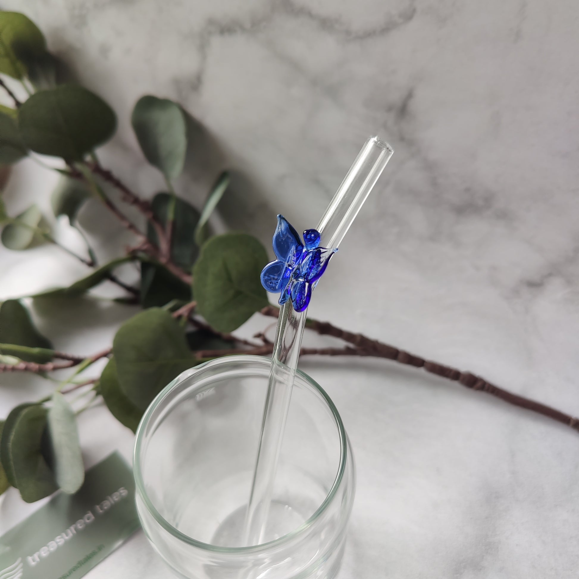 1 Glass straws with Blue Butterfly design