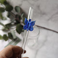 Reusable Clear Glass Straw with Blue Butterfly, Vibrant and Adorable Butterfly Straw – Ideal for Smoothies, Milkshakes, Juices, Teas, Parties, and Gift-Giving