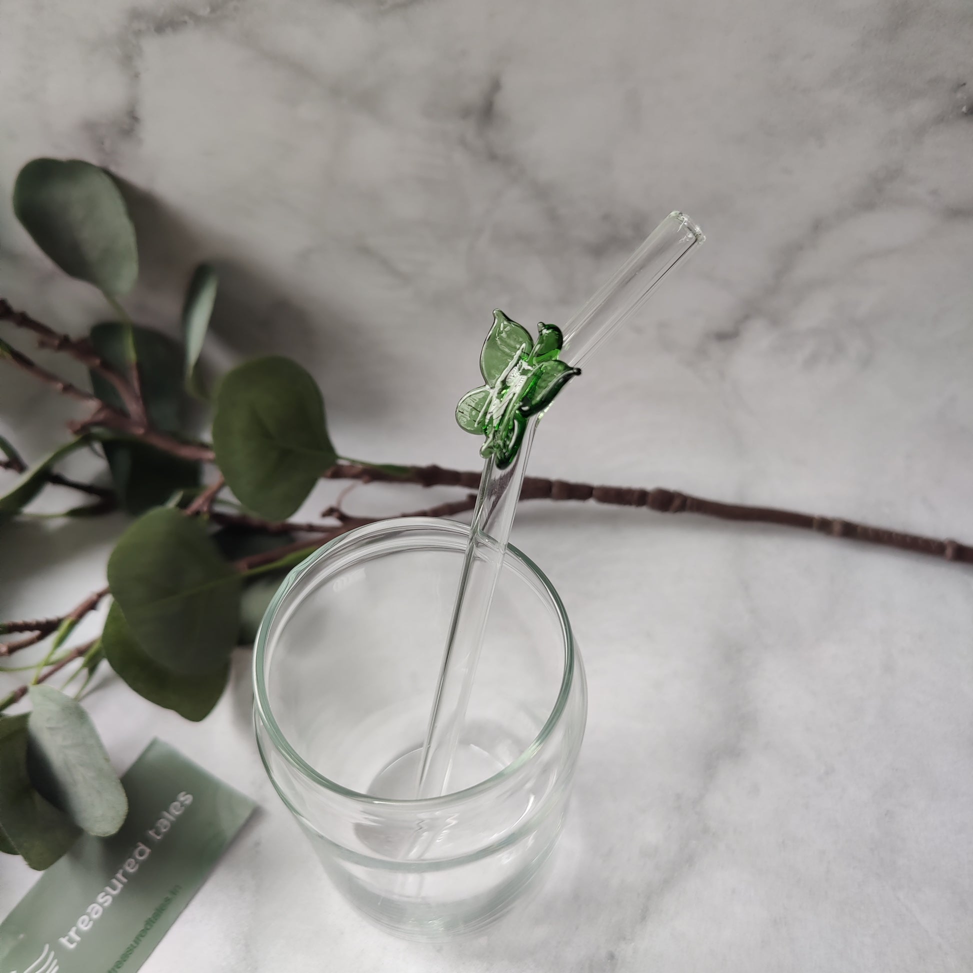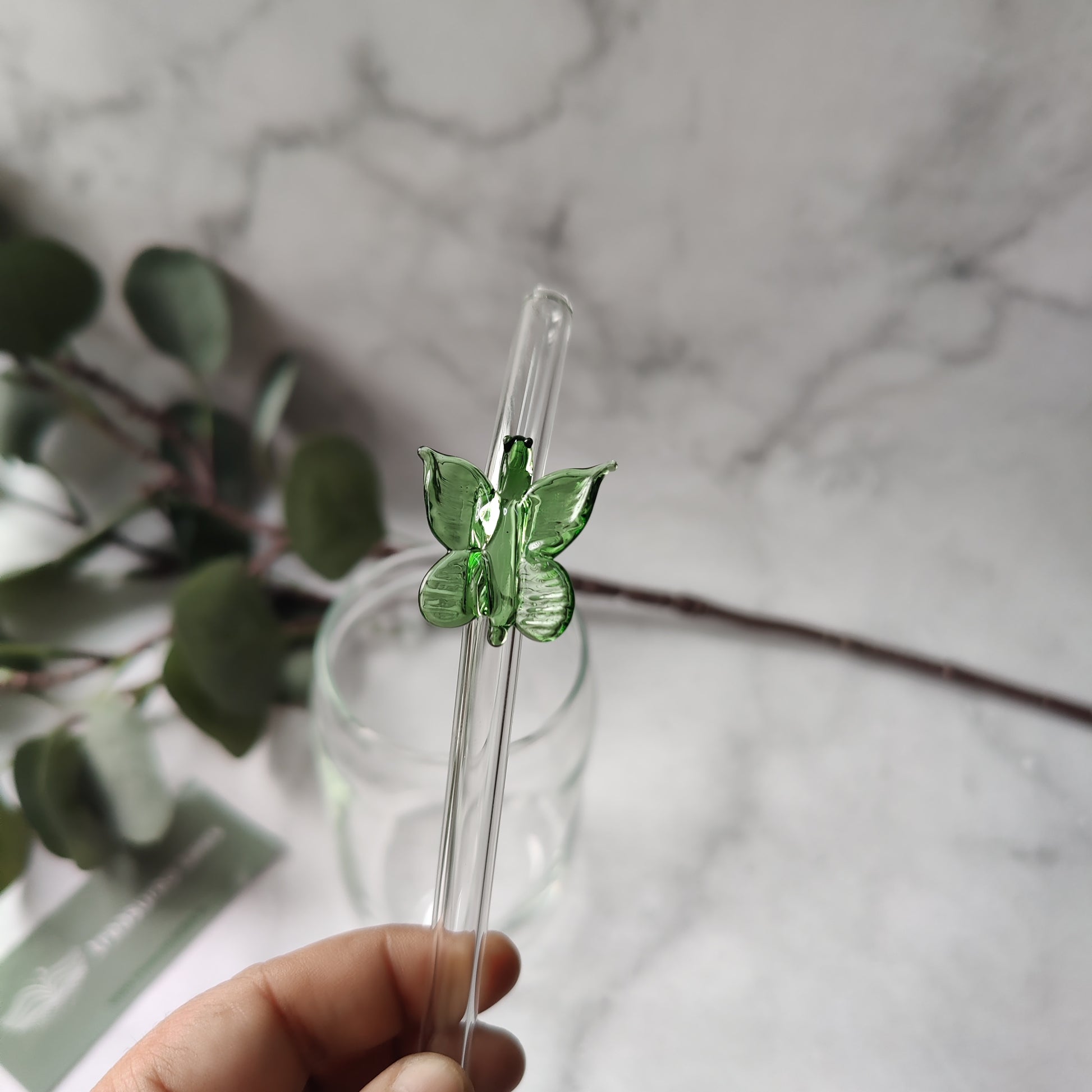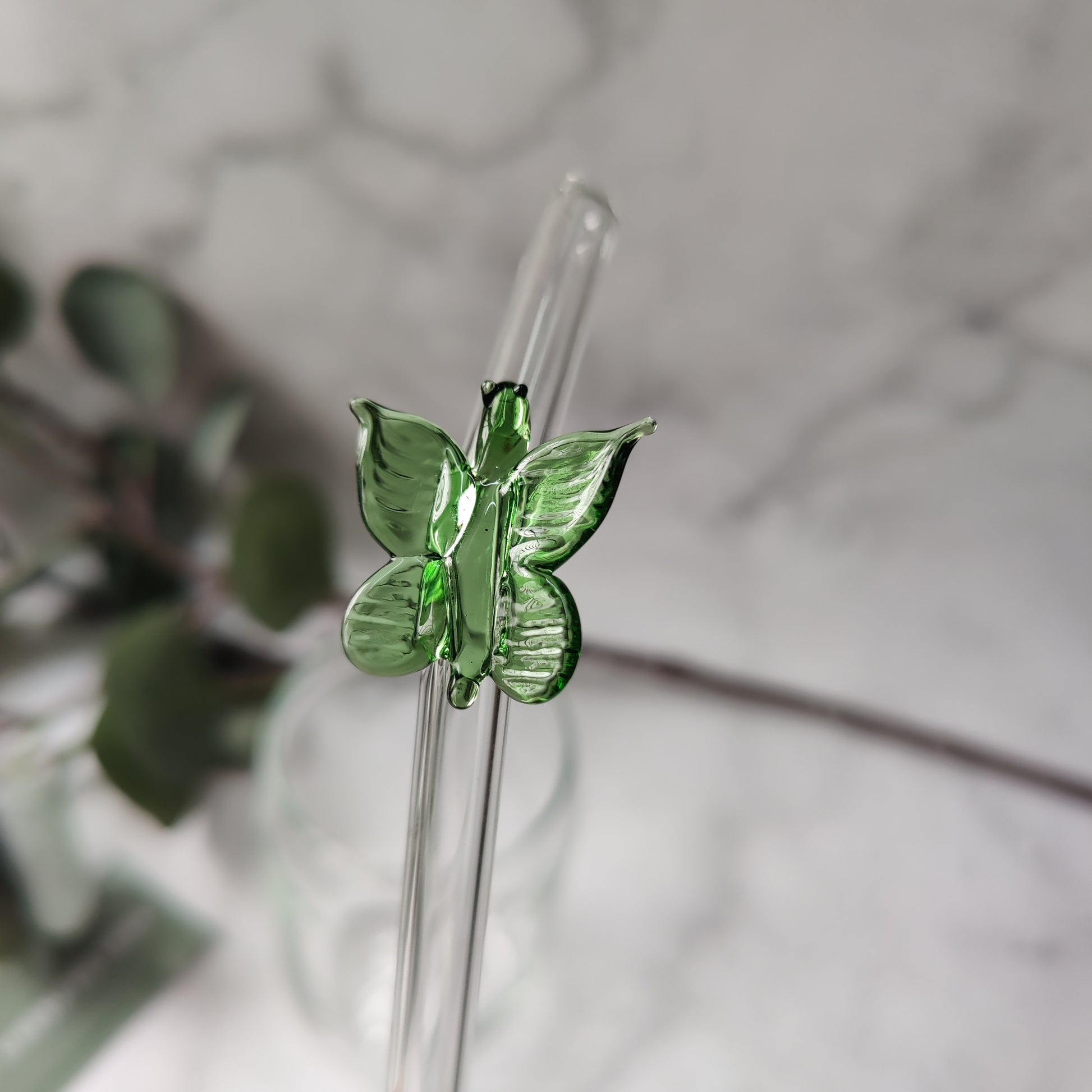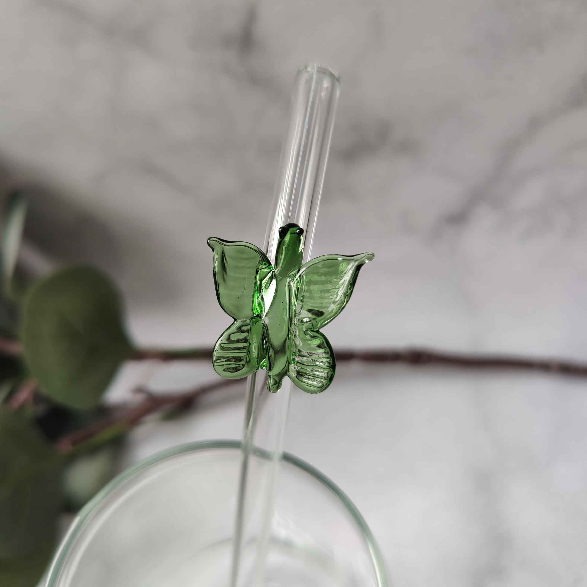 Reusable Clear Glass Straw with Green Butterfly, Vibrant and Adorable Butterfly Straw – Ideal for Smoothies, Milkshakes, Juices, Teas, Parties, and Gift-Giving