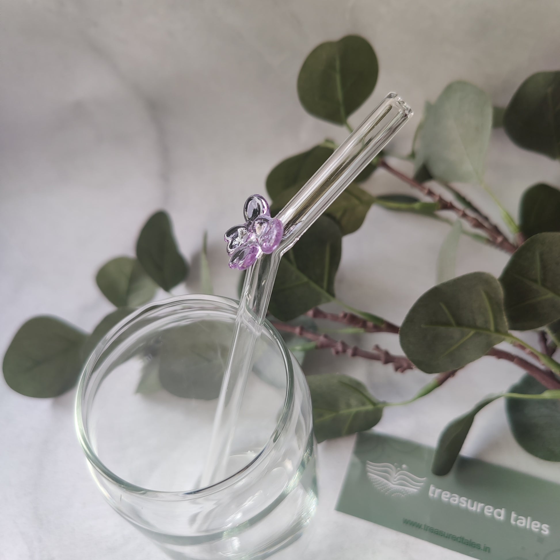 1 Glass straws with Purple Bow design