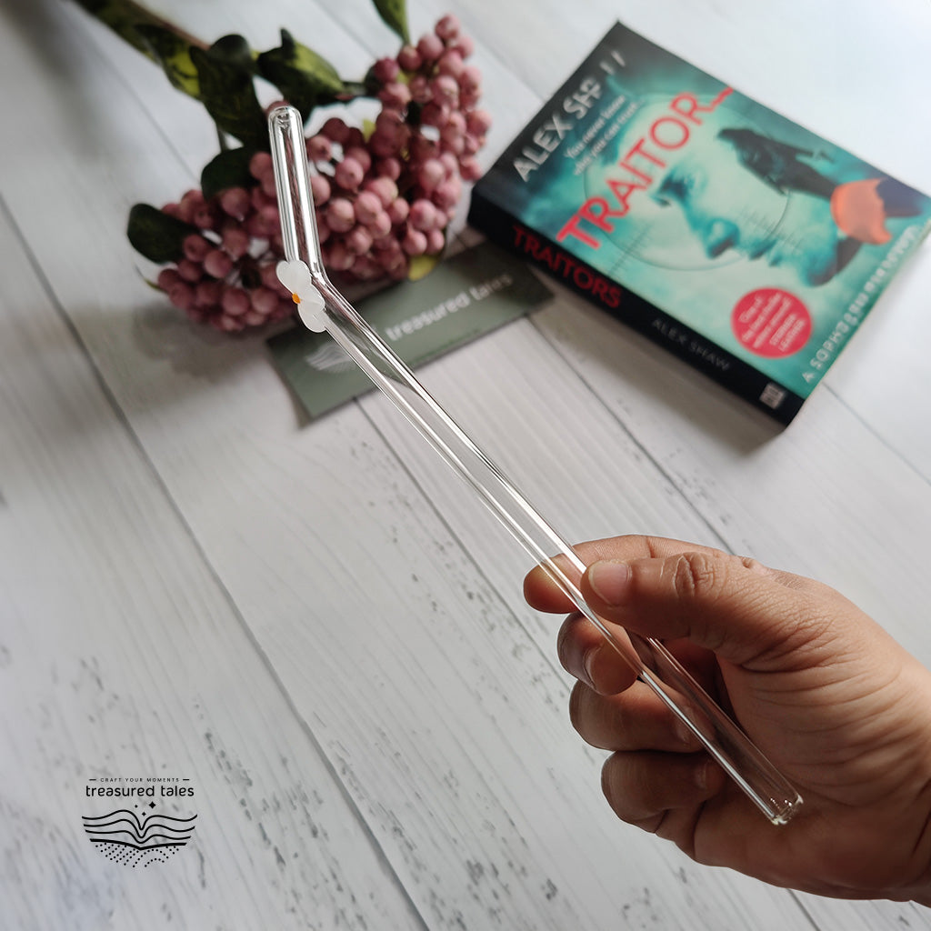 1 Glass straws with white flower design