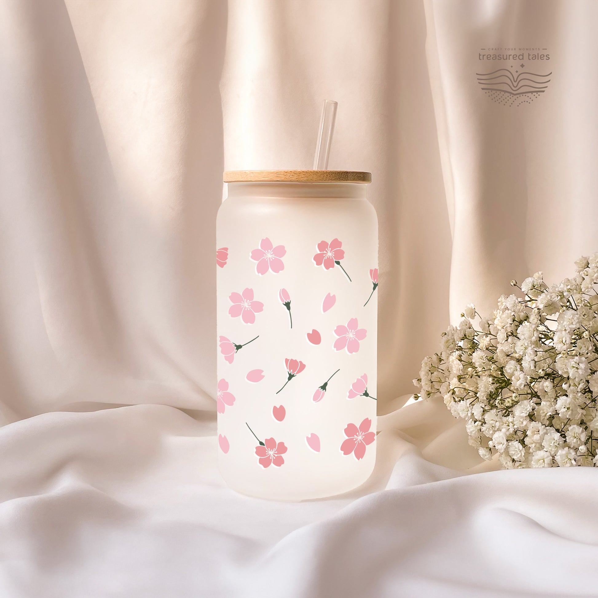 Sakura Flowers Glass Tumbler - Frosted 540ml