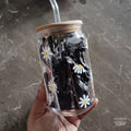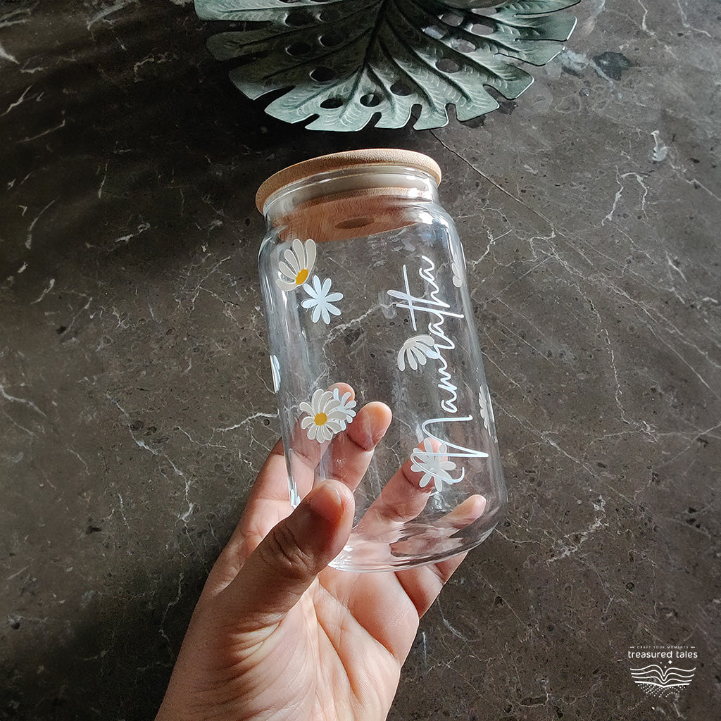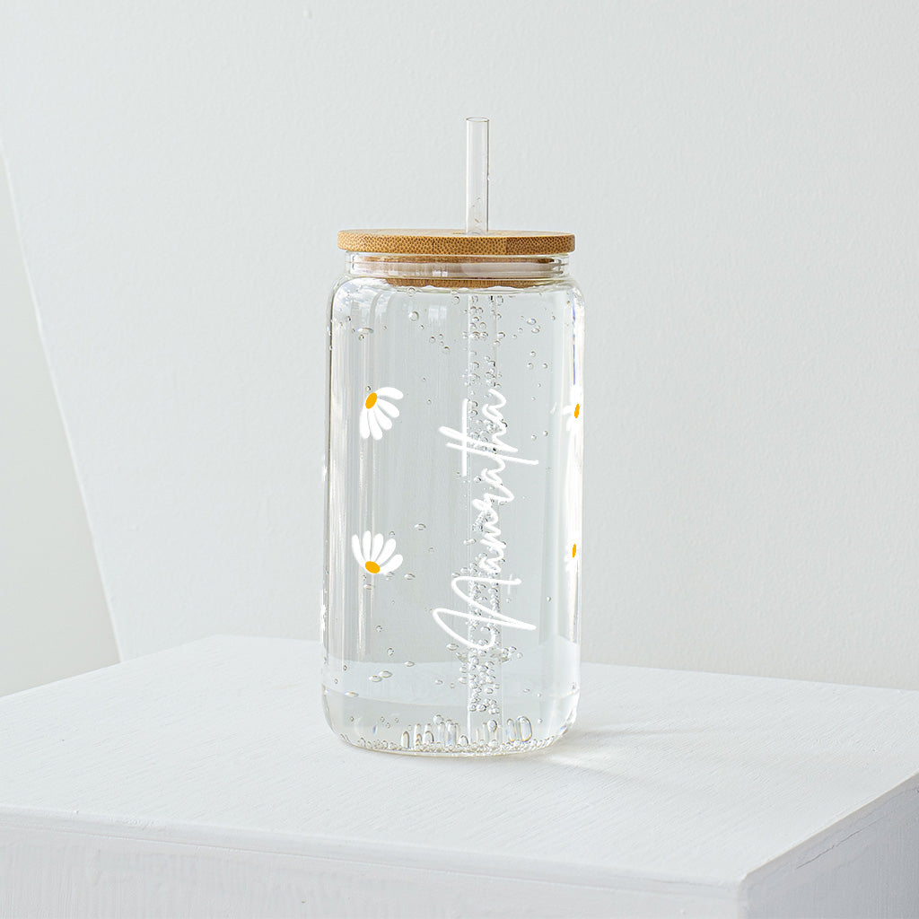 White Daisy Flower Glass Tumbler with Personalisation - Clear 540ml