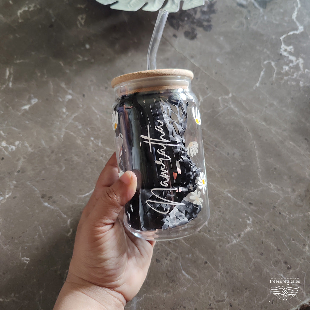 Elevate your glassware selection with our fashionable and functional Can Shaped Printed Glass Drinkware.