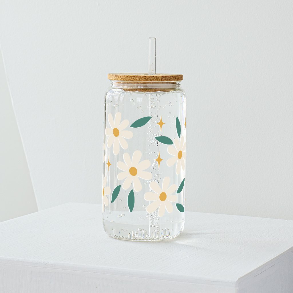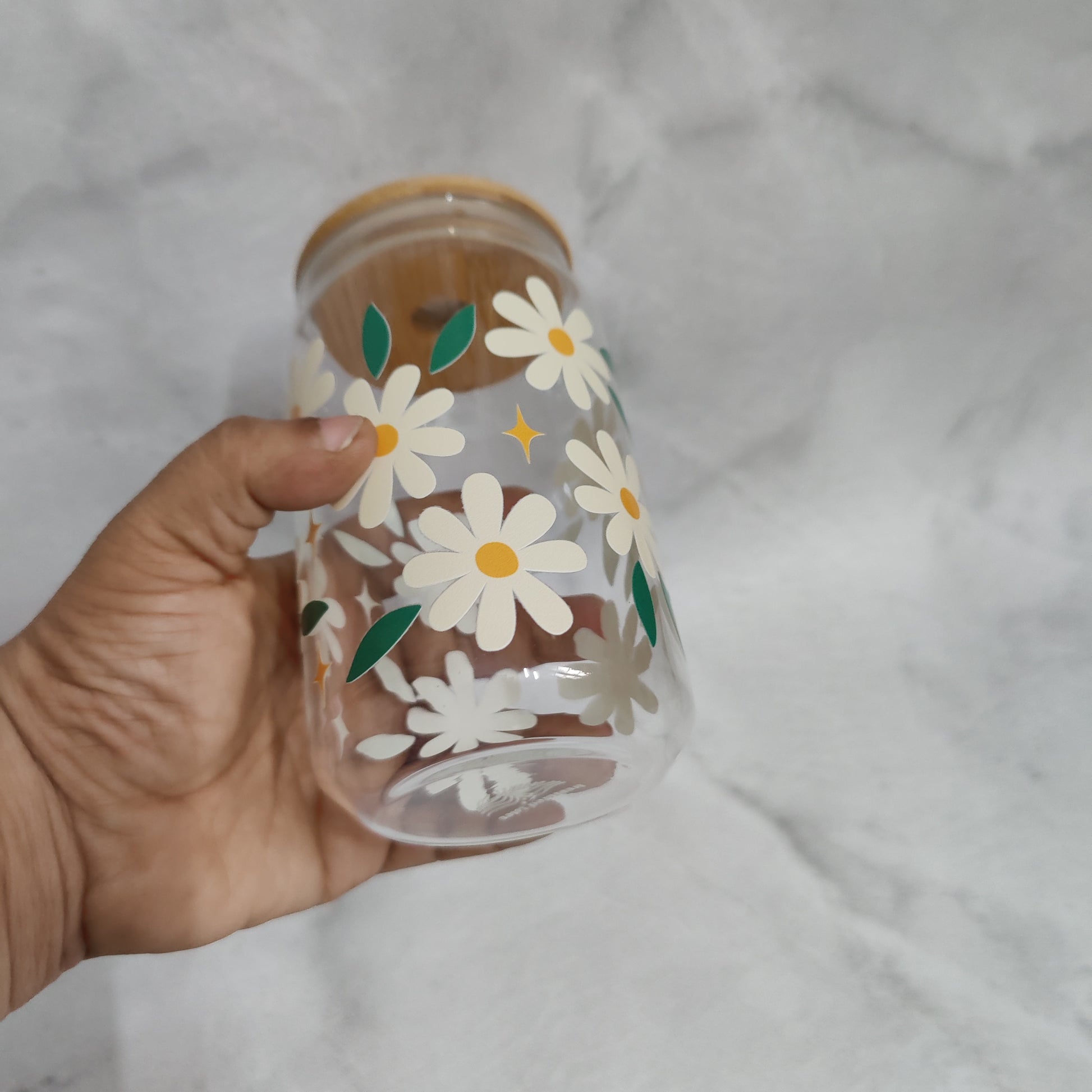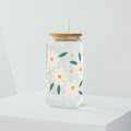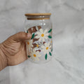 White Daisy Flower Glass Tumbler - Clear 540ml