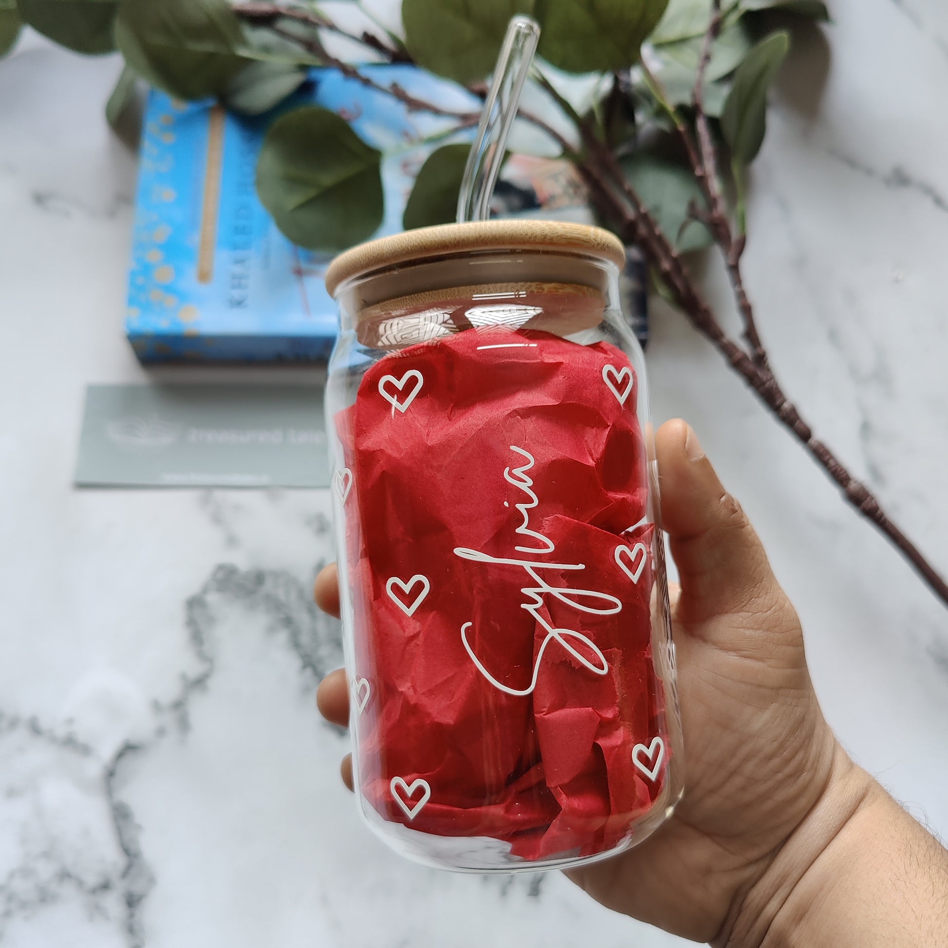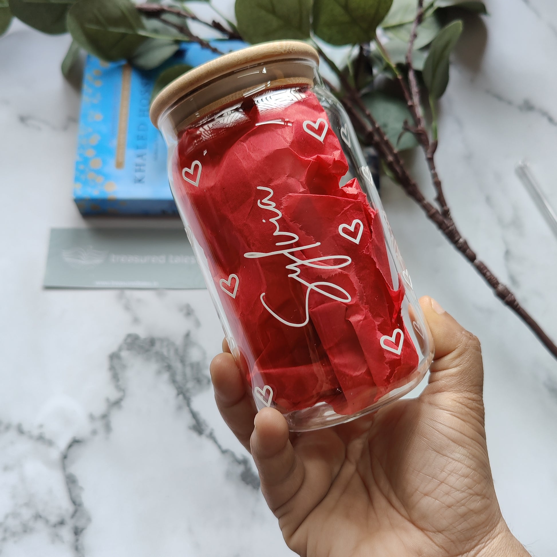 White Small Hearts Glass Tumbler with Personalisation - Clear 540ml