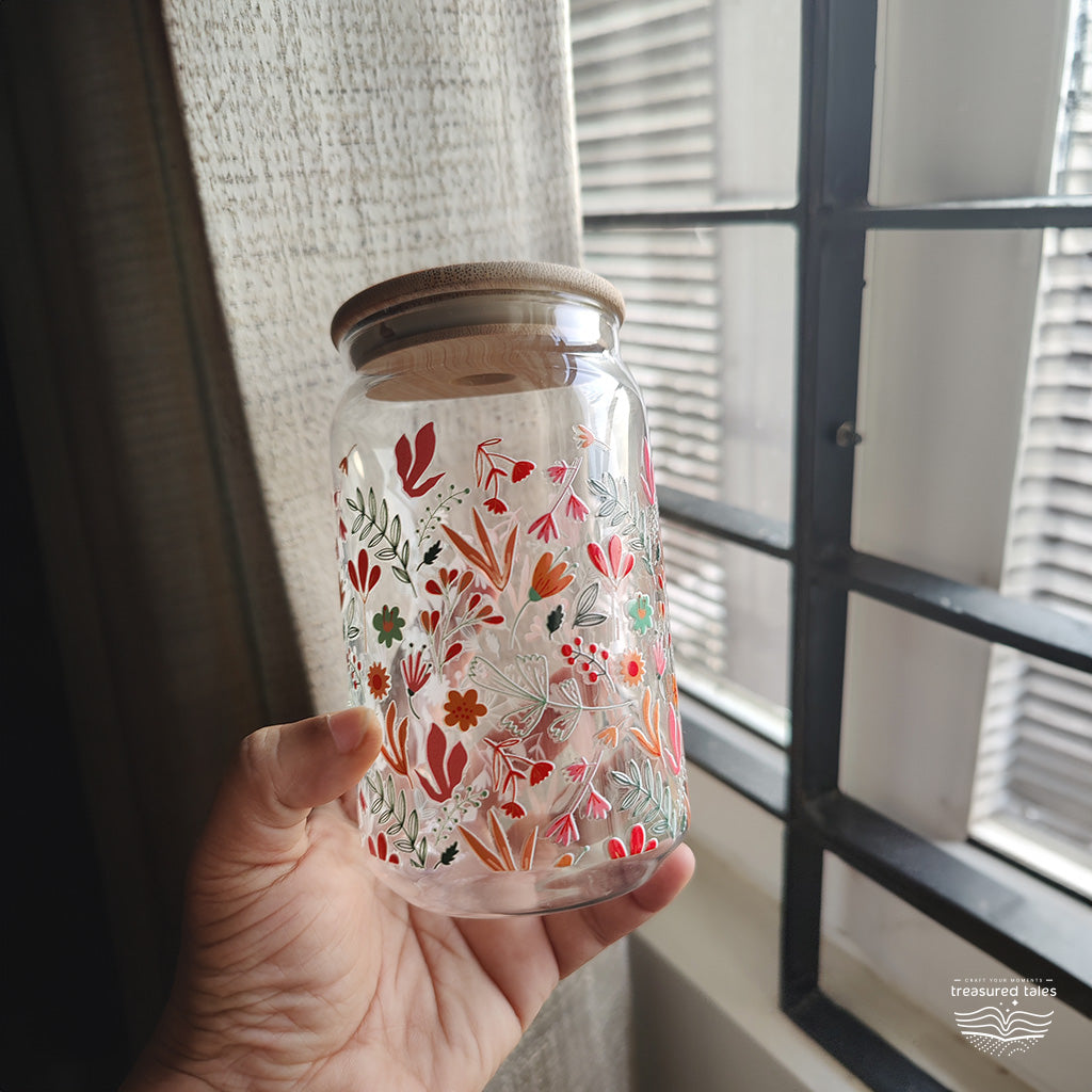 Wild Flowers Glass Tumbler - Clear 540 ml